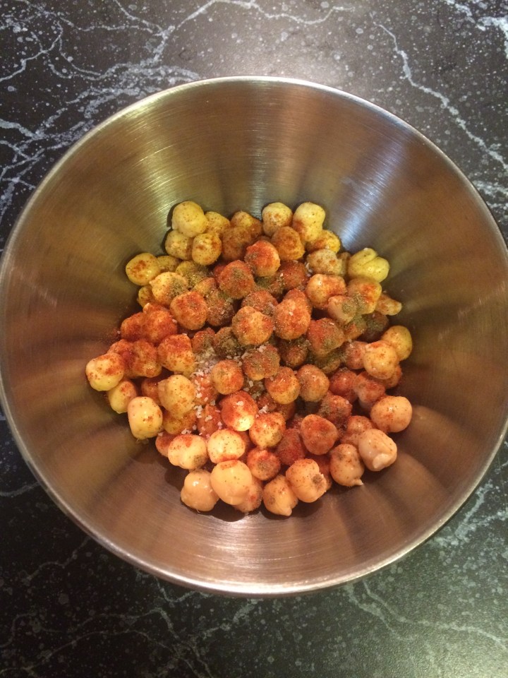 Since this summer I’ve been experimenting with them a few times a week: hummus, sautéed with spinach, burgers, check. I wanted more. It wasn’t until a stay in a Seattle hotel with a bougie vegetarian menu that I stumbled upon ROASTED CHICKPEAS.