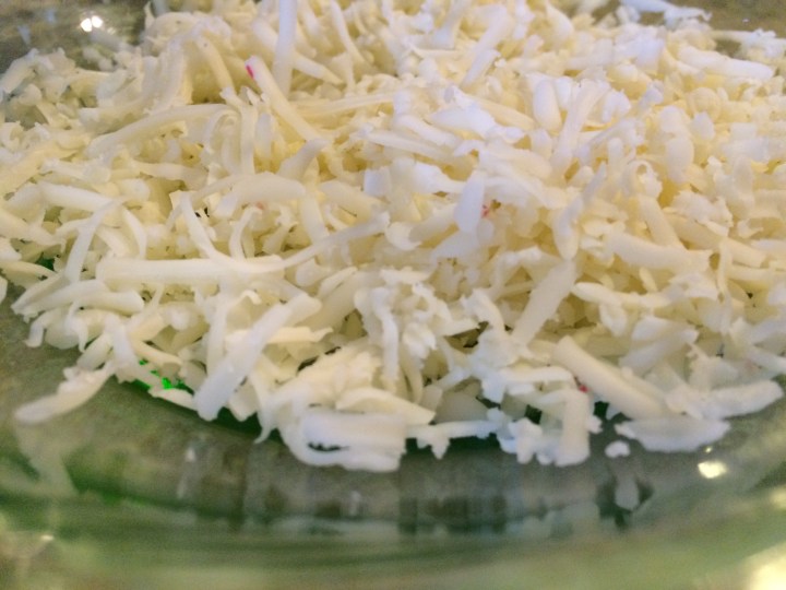 Next up: a simple seven layer salad. I used my mom’s classic recipe, where you literally just pile seven layers of ingredients (spinach, pees, red onion, a mayo/sugar dressing, cheeses, bacon and bread crumbs) on top of one another. Another Easter dish complete, check!
