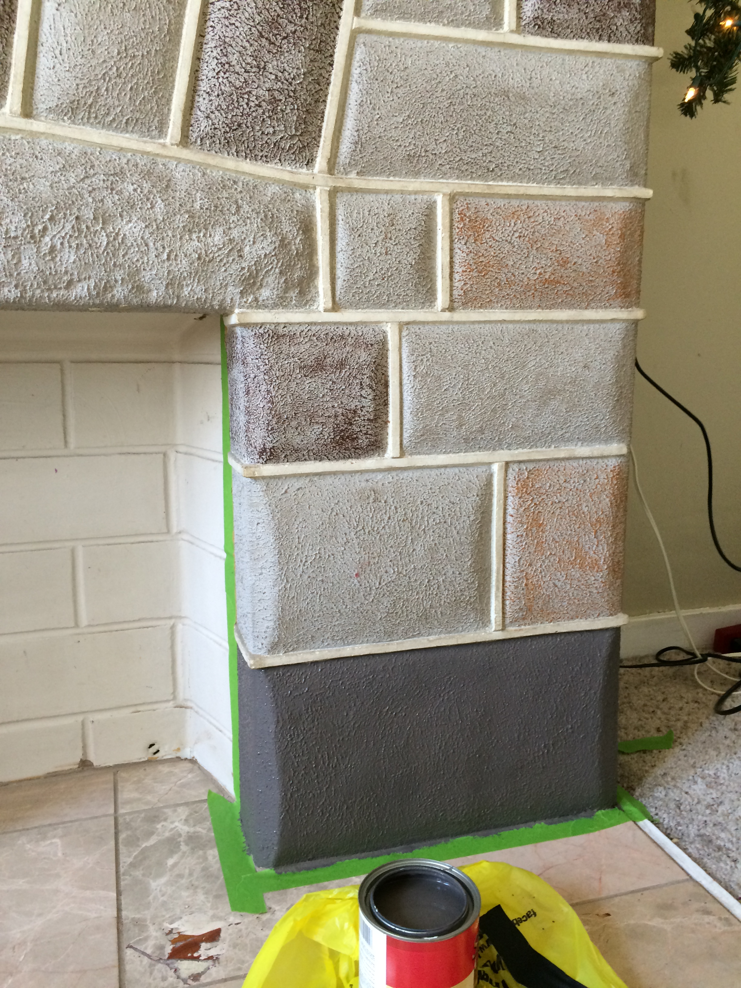 I let the grey paint dry overnight, and tackled the mantle, grout and the interior of the fireplace the next day. For this, I chose a simple, lightly grey-tinted white paint, and voila — a refreshed fireplace!