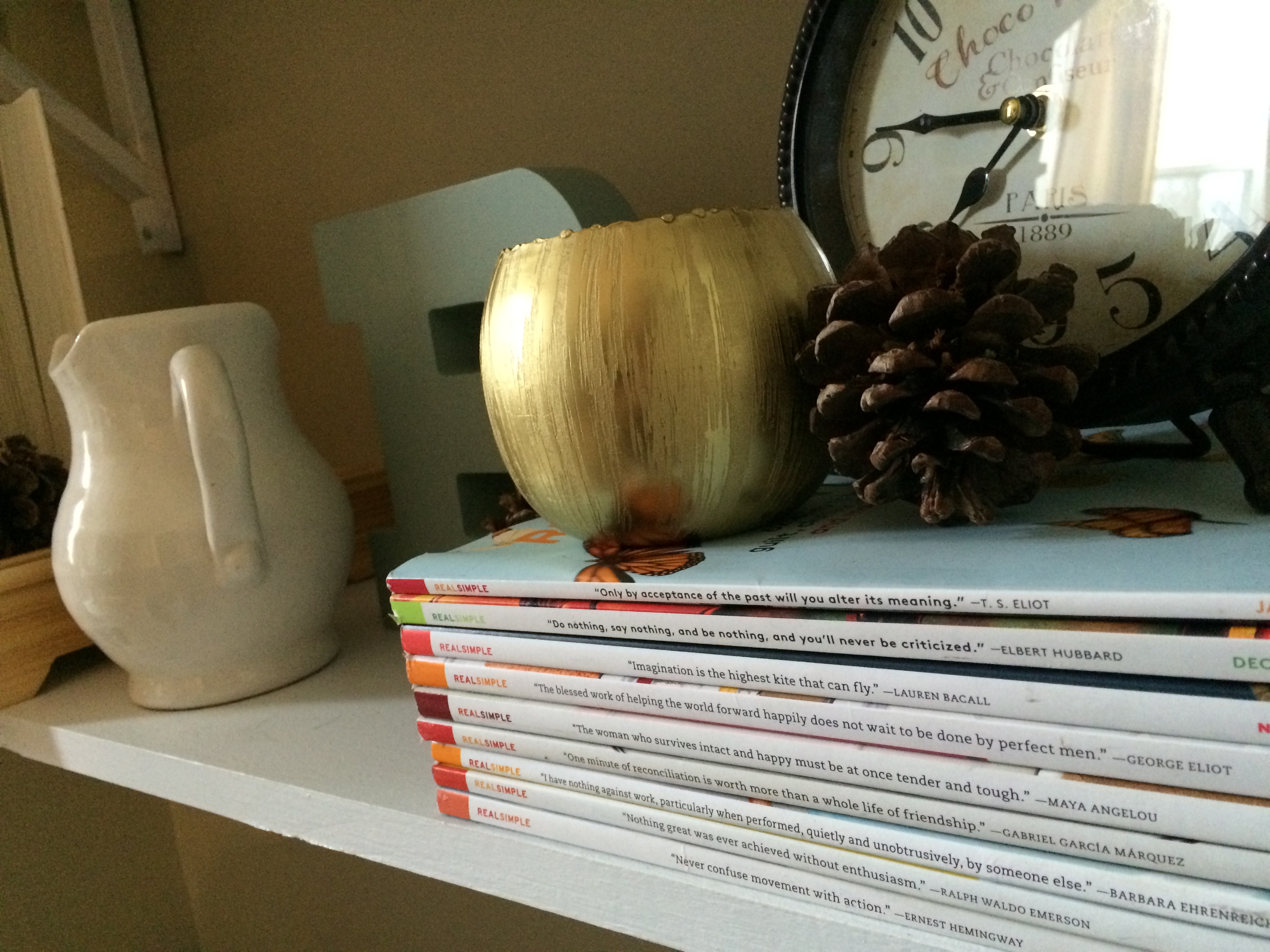 Fortunately, I know a few handy people, and my shelf dreams came true. (Disclaimer: Half of my dreams come true. Somebody managed to score tickets to last night’s playoff game, so our shelf hanging timeframe was minimized. We’ll get the other half done… eventually.) Check out the fruits of our labor… and Lauren Graham’s “Those shelves look amazing!” face!